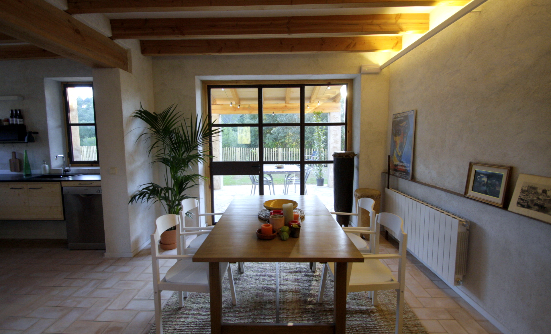 Kitchen with all appliances needed, living room with fireplace and kid’s corner with table and games.