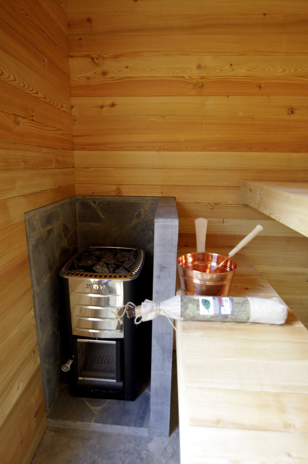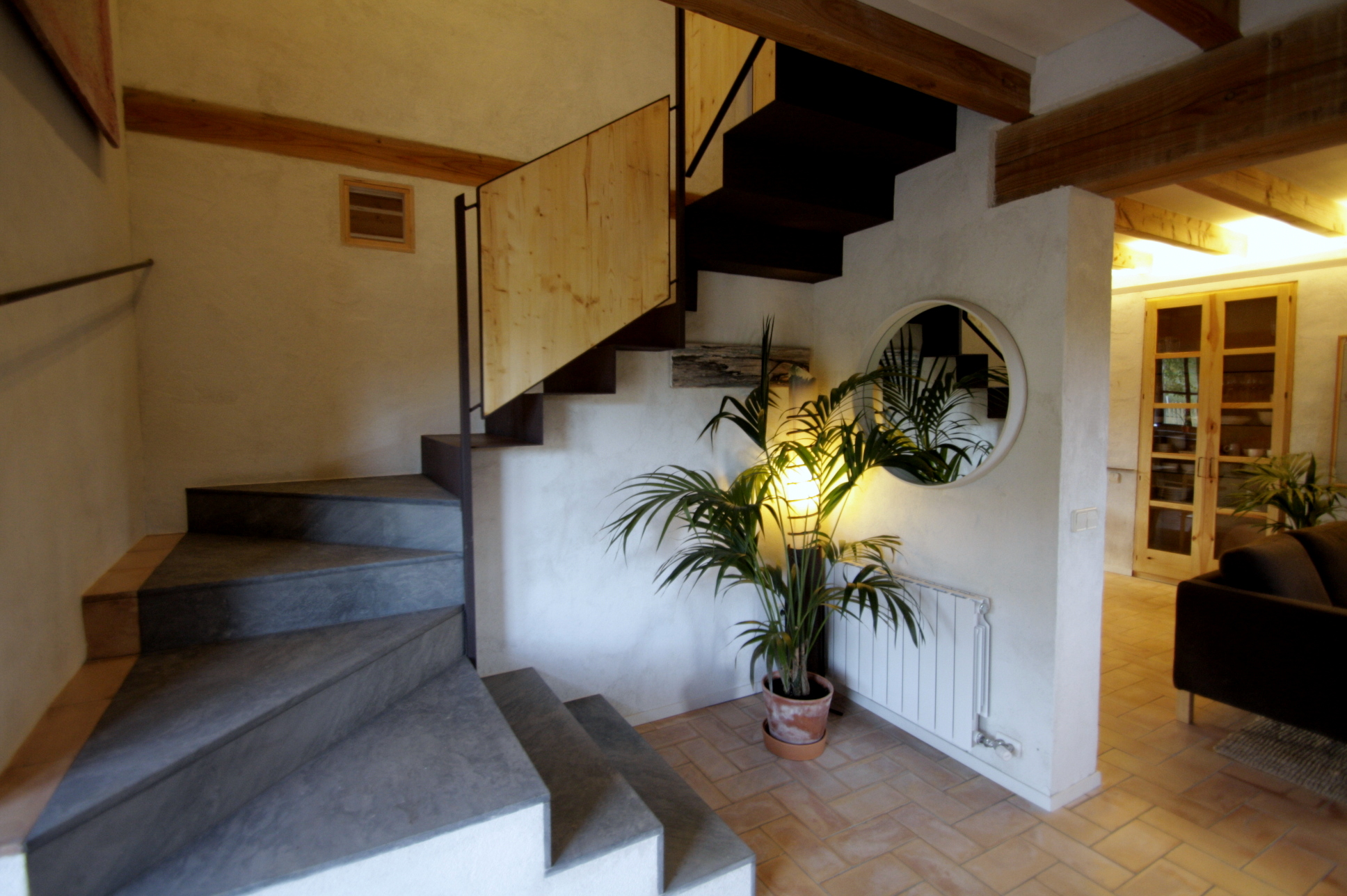 Three bedrooms: one with two single twin beds, the other two with double bed (150 cm). One of them has a double sofa-bed in case some extra beds are needed.